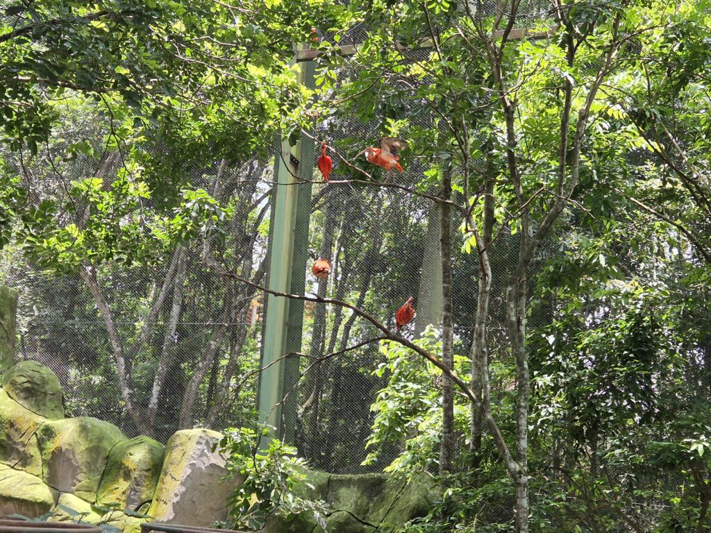 Integrada à Reserva está a Animália Forest, um grande viveiro onde diversas espécies de aves circulam livremente. O ambiente reproduz características dos habitats naturais, criando uma experiência de imersão. As aves voam, pousam e se deslocam entre árvores e estruturas, compondo um cenário dinâmico e vivo. O contato visual mais próximo e a possibilidade de acompanhar esses movimentos tornam a visita especialmente envolvente.