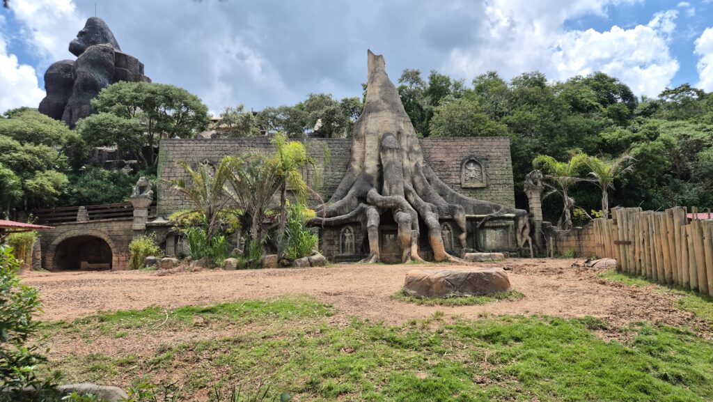 Além das áreas principais, o complexo conta com infraestrutura de apoio, incluindo espaços para descanso e alimentação. A chamada Vila Animália reúne restaurantes e cafés, funcionando como ponto de pausa ao longo do passeio e contribuindo para uma experiência mais confortável.