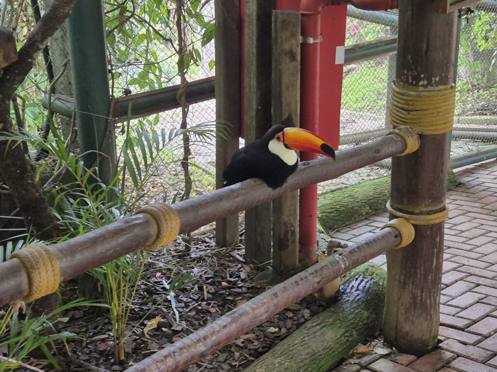 A estrutura foi pensada para proporcionar conforto ao visitante sem comprometer a experiência de imersão. Grande parte do trajeto é coberta, o que permite percorrer o espaço com tranquilidade em dias de sol intenso ou chuva. Esse detalhe contribui para uma visita mais contemplativa, favorecendo a observação cuidadosa da paisagem e dos animais.