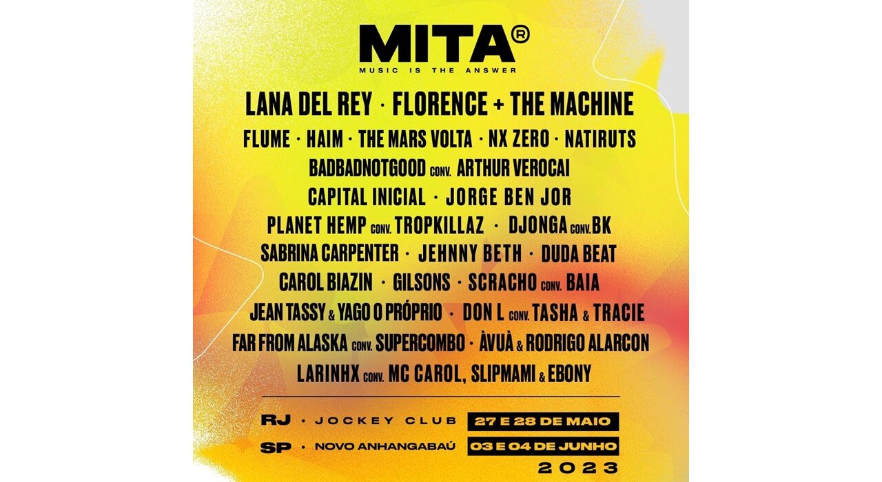 Sucesso total em sua primeira edição, que aconteceu em 2022, o Festival MITA chega esse ano com o mesmo espírito de inovação, animação e irreverência que marcaram sua estreia. O evento acontece novamente no Rio de Janeiro, nos dias 27 e 28 de maio, e em São Paulo, dias 03 e 04 de junho. A música é o grande destaque, unindo nomes nacionais e internacionais, muitos já consagrados, encontros e reencontros.
